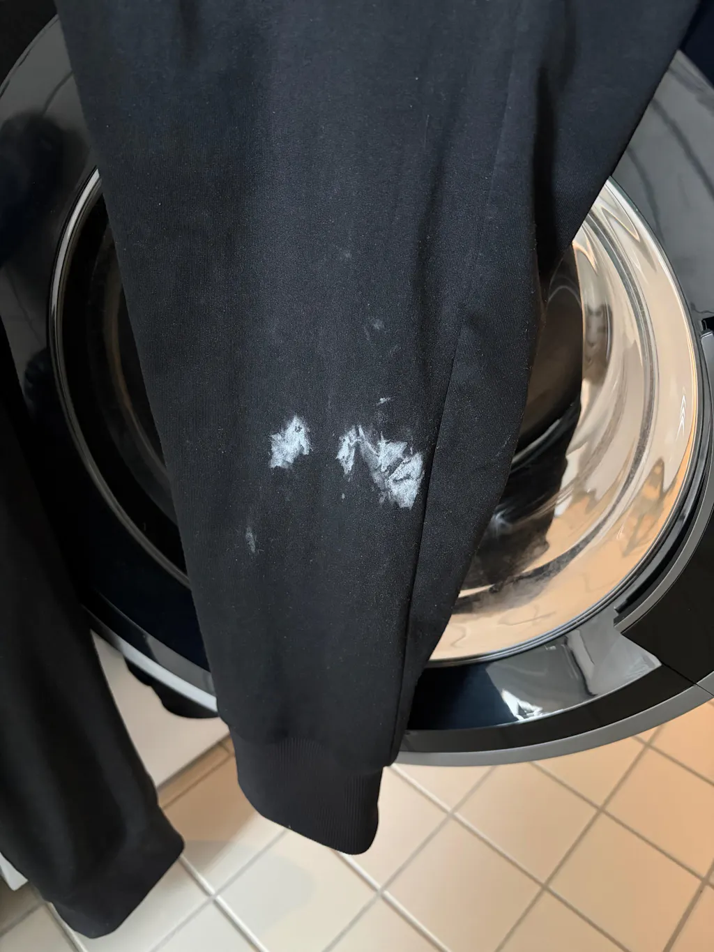 Oft bleiben bei Programmen die reduziert die Waschtrommel drehen weisse Rückstände auf der Wäsche. Die Waschstreifen lösen sich offensichtlich nicht vollständig auf. Das Kleidungsstück muss dann nochmal gewaschen werden.