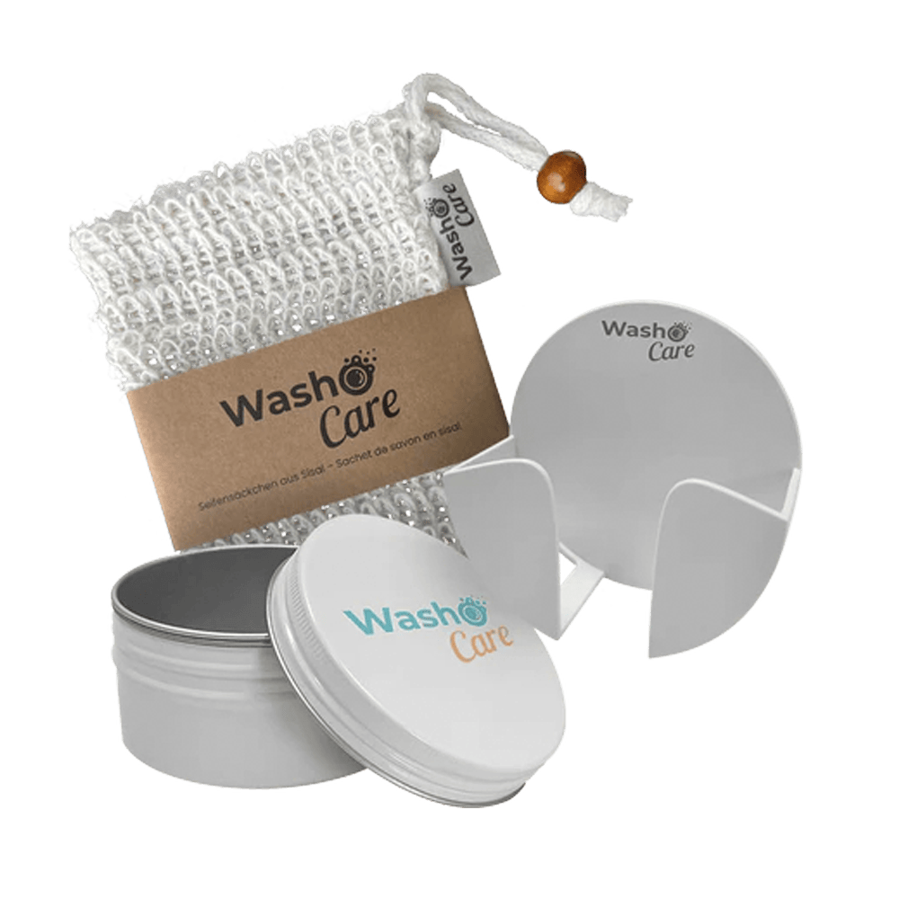 Die Aufbewahrung und Lagerung der festen Duschpflegen und Shampoos ist mit dem Zubehör von Washo Care ein Kinderspiel.