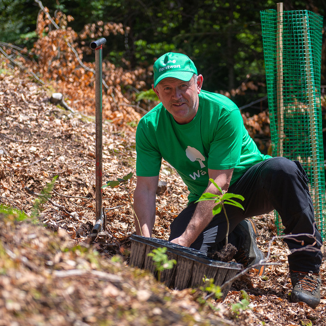 Unser Washo Forstwart Cornel Aschwanden achtet immer besonders auf eine gesunde Artenvielfalt und wählt die richtigen Baumsorten, die das immer wärmere Klima gut vertragen.